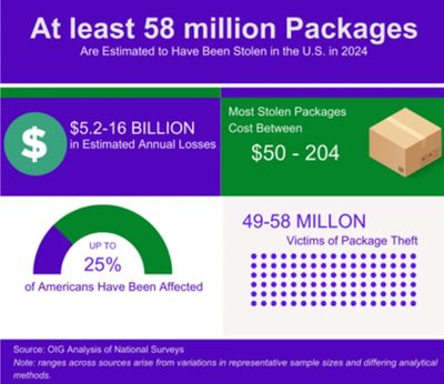 Lost, stolen and damaged packages are an epidemic in the United States. In 2024 over 58 million packages were stolen and an untold number of items were either lost or damaged during shipping.